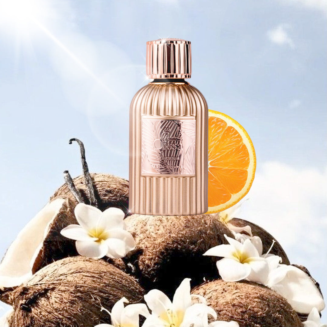 Paris Corner Qissa Delicious opens with a luscious blend of caramel, juicy blackcurrant, and crisp pear, instantly awakening the senses with its mouthwatering appeal. The heart blooms with creamy orange blossom and jasmine, intertwined with nutty almond for a warm, comforting feel. As it settles, the fragrance reveals a seductive base of smooth vanilla, rich tonka bean, sensual musk, and earthy patchouli—leaving behind a lingering, dessert-like trail that’s utterly captivating.