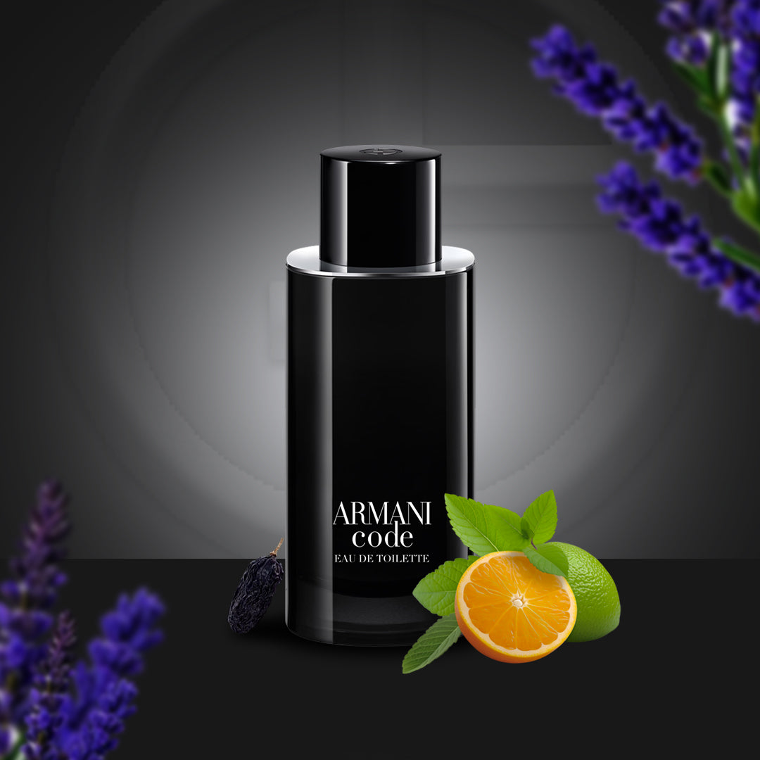 Giorgio Armani Armani Code Eau de Toilette opens with a vibrant burst of bergamot and lemon, delivering a fresh and invigorating introduction. The heart unveils an intriguing blend of olive blossom, star anise, and guaiac wood, exuding a warm and spicy sophistication. The base notes of tonka bean, leather, and tobacco provide a rich, sensual finish, leaving a captivating trail of mystery and charm.